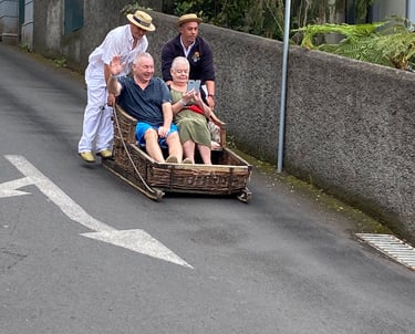 One of Madeira’s most famous and unique traditions, the Monte toboggan ride is both a thrill and a piece of living history. What looks at first like a tourist attraction actually began as a practical form of transportation in the early 19th century, when locals used wicker basket sledges to travel quickly downhill from Monte to Funchal before modern roads existed.