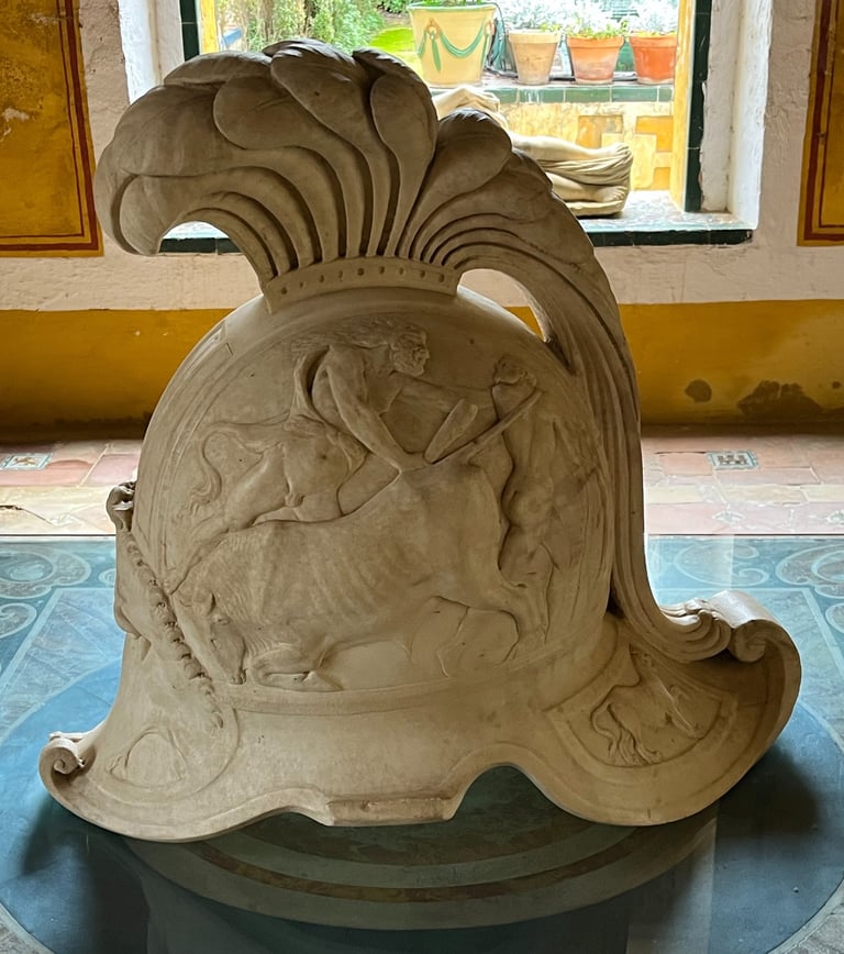 Renaissance columns, arches, and marble statues imported from Italy