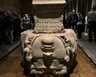 Dim lighting, echoing drips of water, rows of 336 columns — and the eerie Medusa heads.