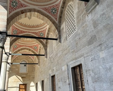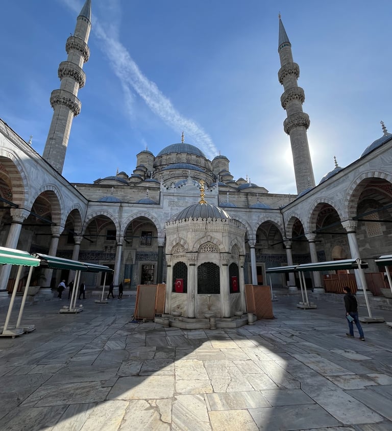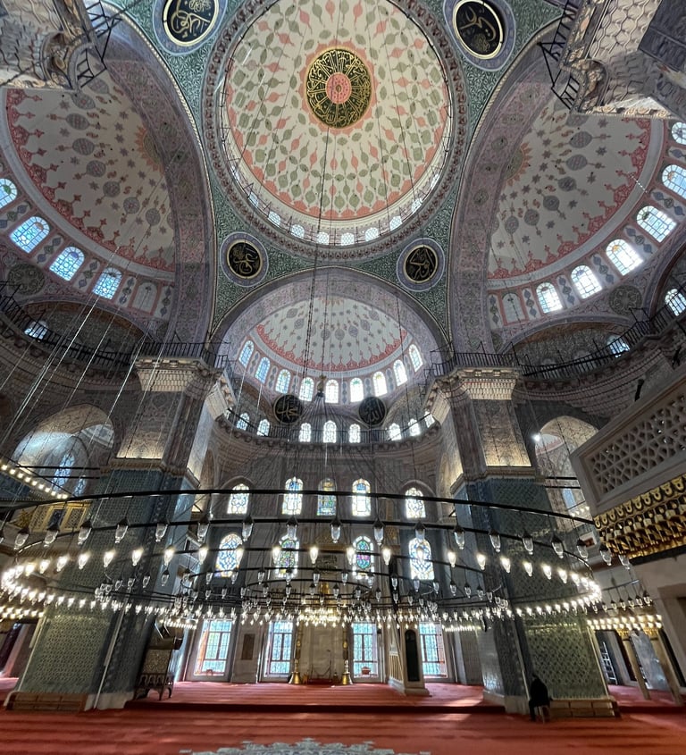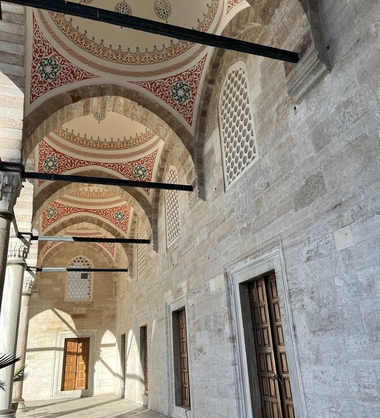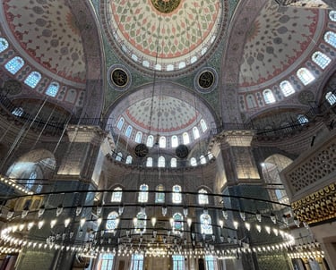 More to love: Yeni Cami sits right where the Golden Horn meets the Bosphorus, so the atmosphere around it is always lively — fishermen on Galata Bridge, ferries pulling in and out, and countless pigeons swirling overhead. Inside, the peaceful ambiance and intricate tilework make it a perfect escape from the busy streets outside. A controversial opinion, but… I think Yeni Cami is the most beautiful mosque in Istanbul. The colorful tiles, the tranquil atmosphere, the stunning ceiling — all without the massive crowds.