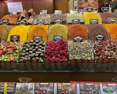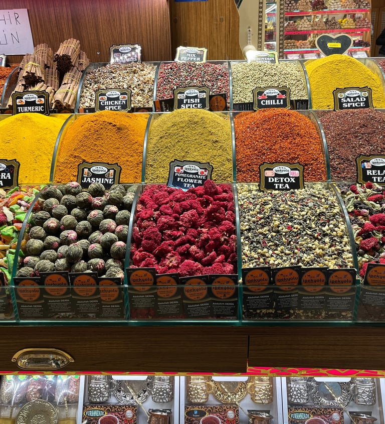 Why this market stands out: While touristy, the Spice Bazaar is still a working marketplace for locals — especially for spices, nuts, and herbal teas. Most vendors are happy to explain what each spice is used for, and many shops blend their own mixes. Don’t miss the saffron displays, pomegranate tea, or rose-flavored lokum. Built in the 1600s, this fragrant market is a sensory explosion — pyramids of spices, mountains of Turkish delight, dried fruits, nuts, teas, and intricate displays of color.